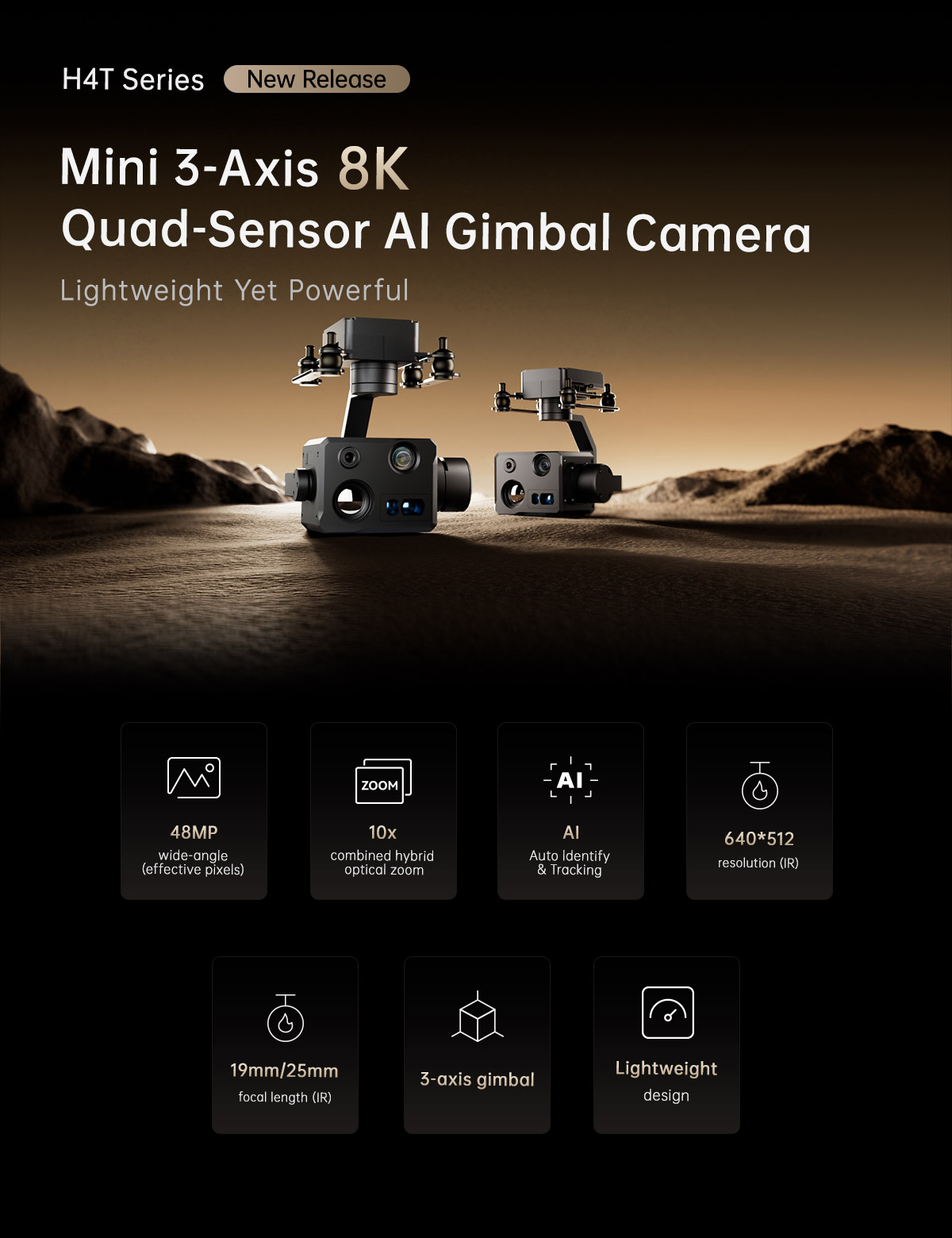 H4T-25/H4T-19 Mini 3-Axis 8K Quad-Sensor AI Gimbal Camera Specification