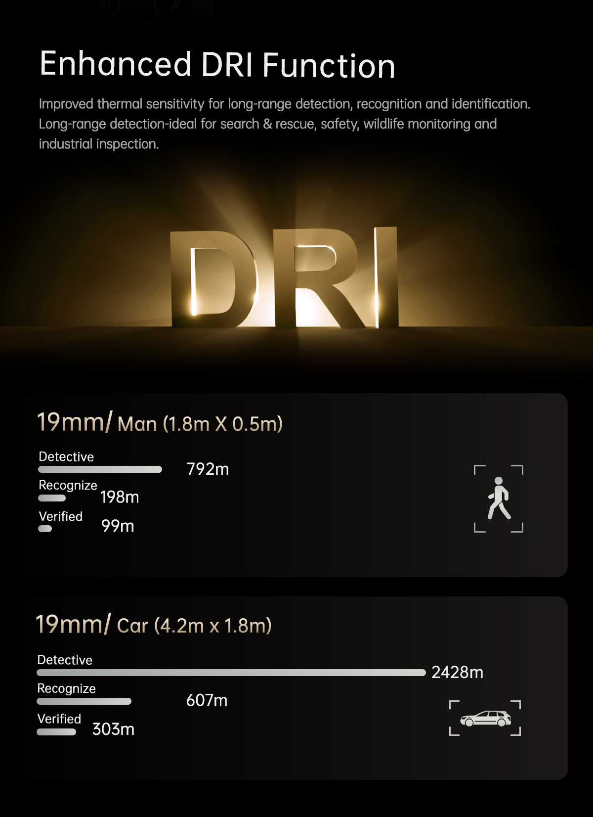 | Identification Distance (Man: 1.8x0.5m) | 130 meters |