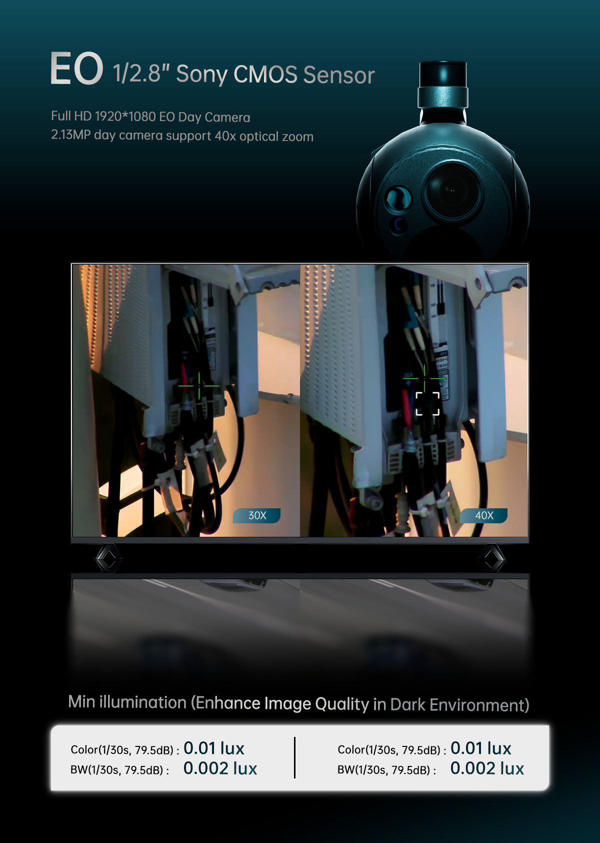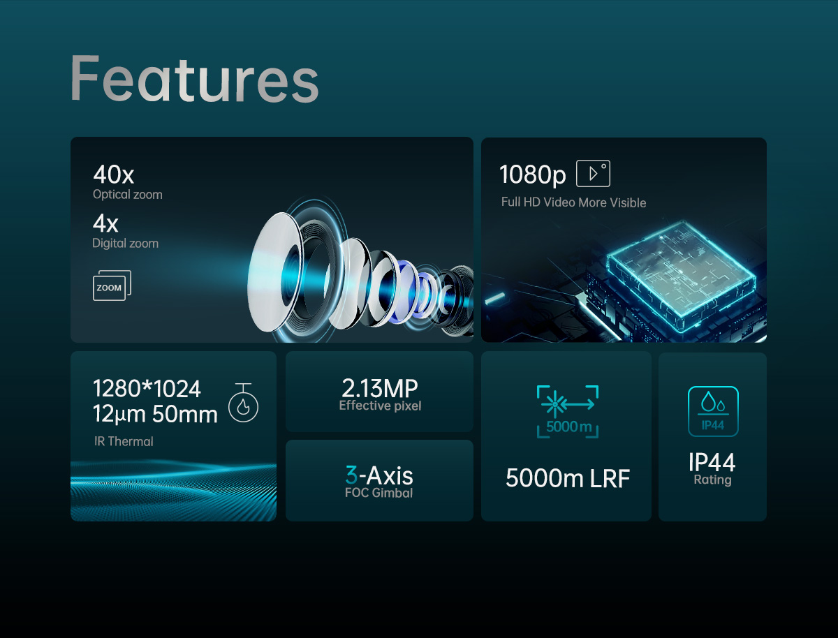 Para obtener más detalles, visite Cámara con cardán Q40TIRM-HD Zoom óptico de 40X Sensores triples Alta resolución Supervisible Térmico 5 km LRF