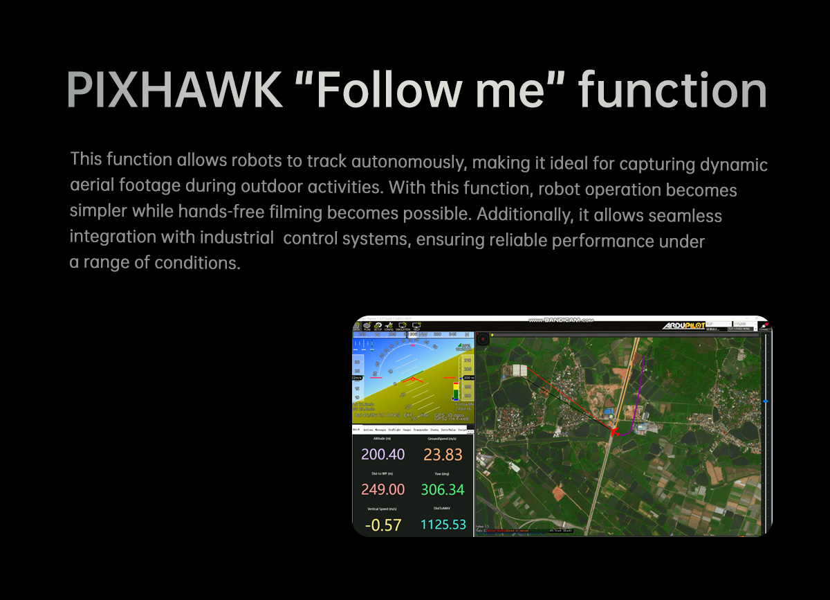 | ArduPilot / PX4 | Compatible (protocolo Mavlink) Opcional: compatible con la función Sígueme de Ardupilot |