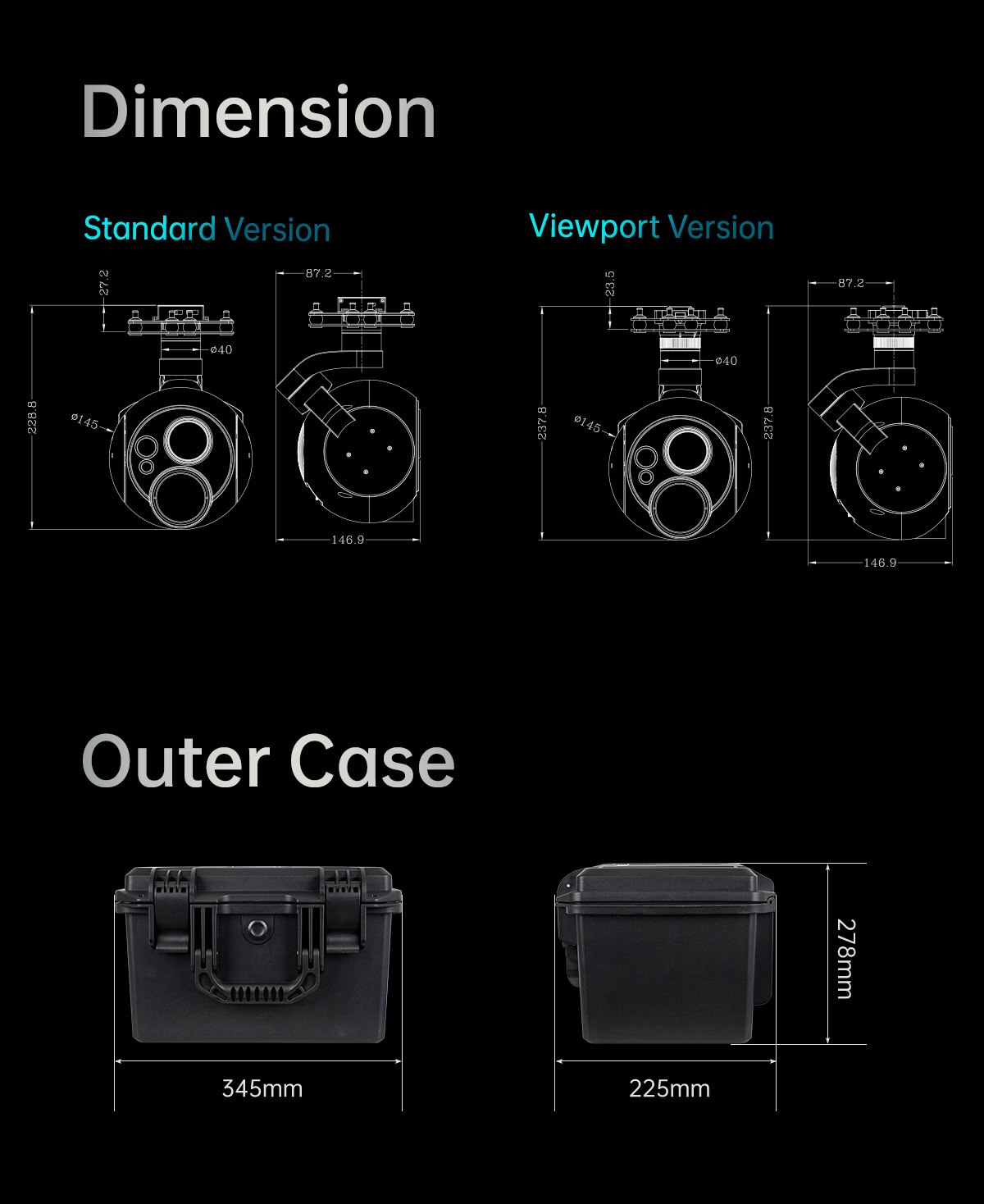 | Medidas del producto | 146,9*145*228,8 mm (versión estándar) / 146,9*145*237,8 mm (versión Viewport con Viewport) |