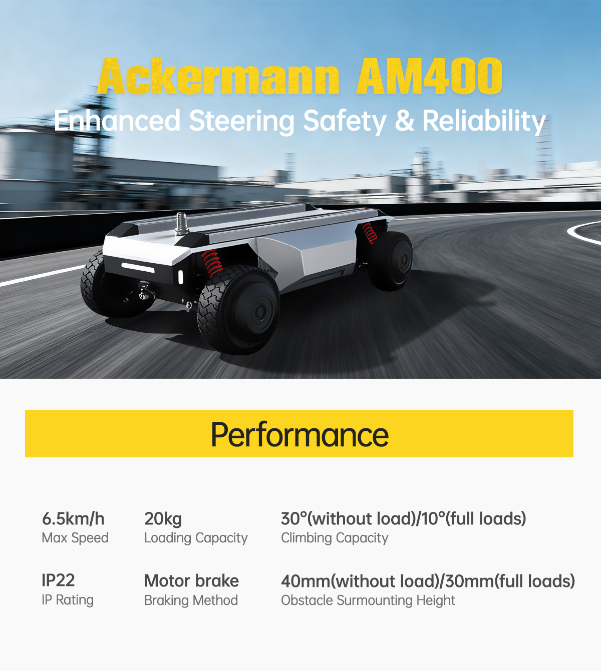 High-Precision UGV Ackermann AM400 Enhanced Steering Safety & Reliability