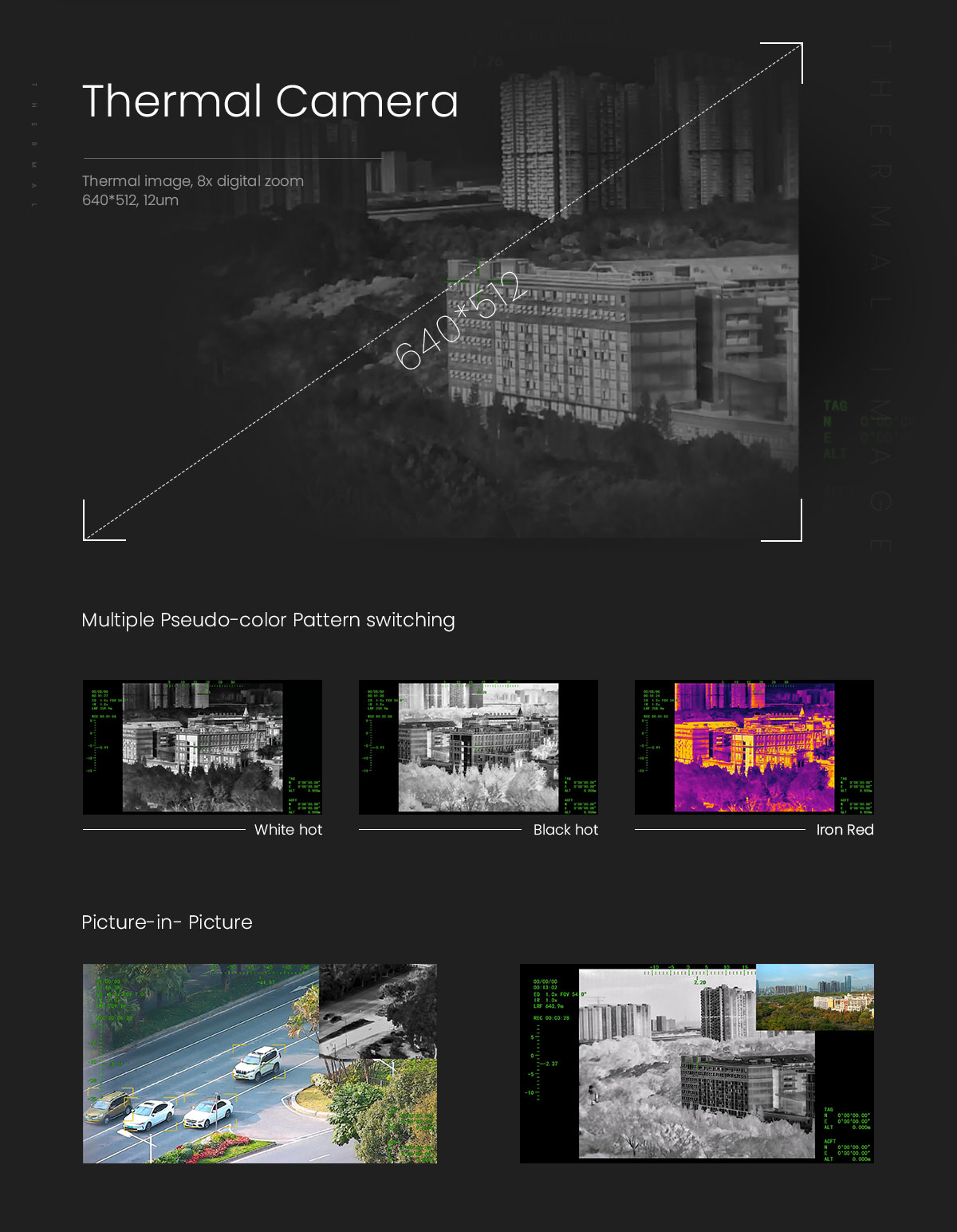 | Working mode | Uncooled VOx long wave (8μm~14μm) thermal imager |