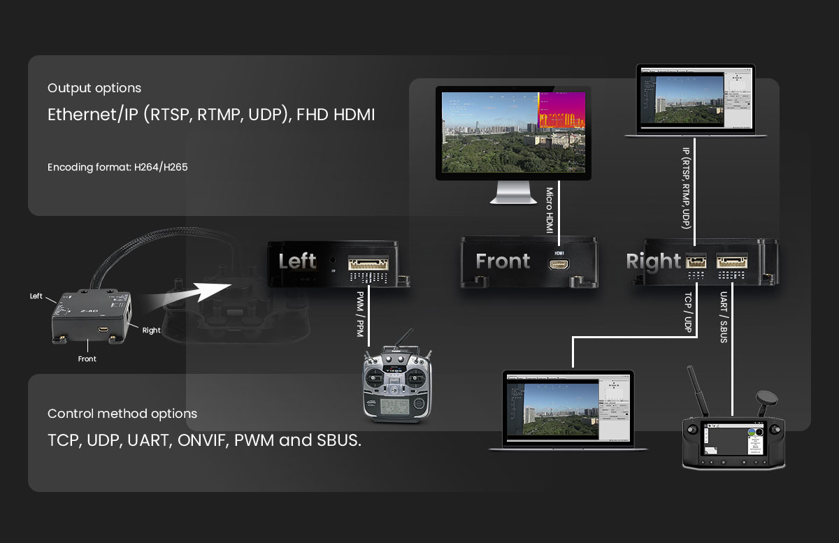 | Control method | PWM / TTL / S.BUS / TCP(IP output)/UDP(IP output version) |