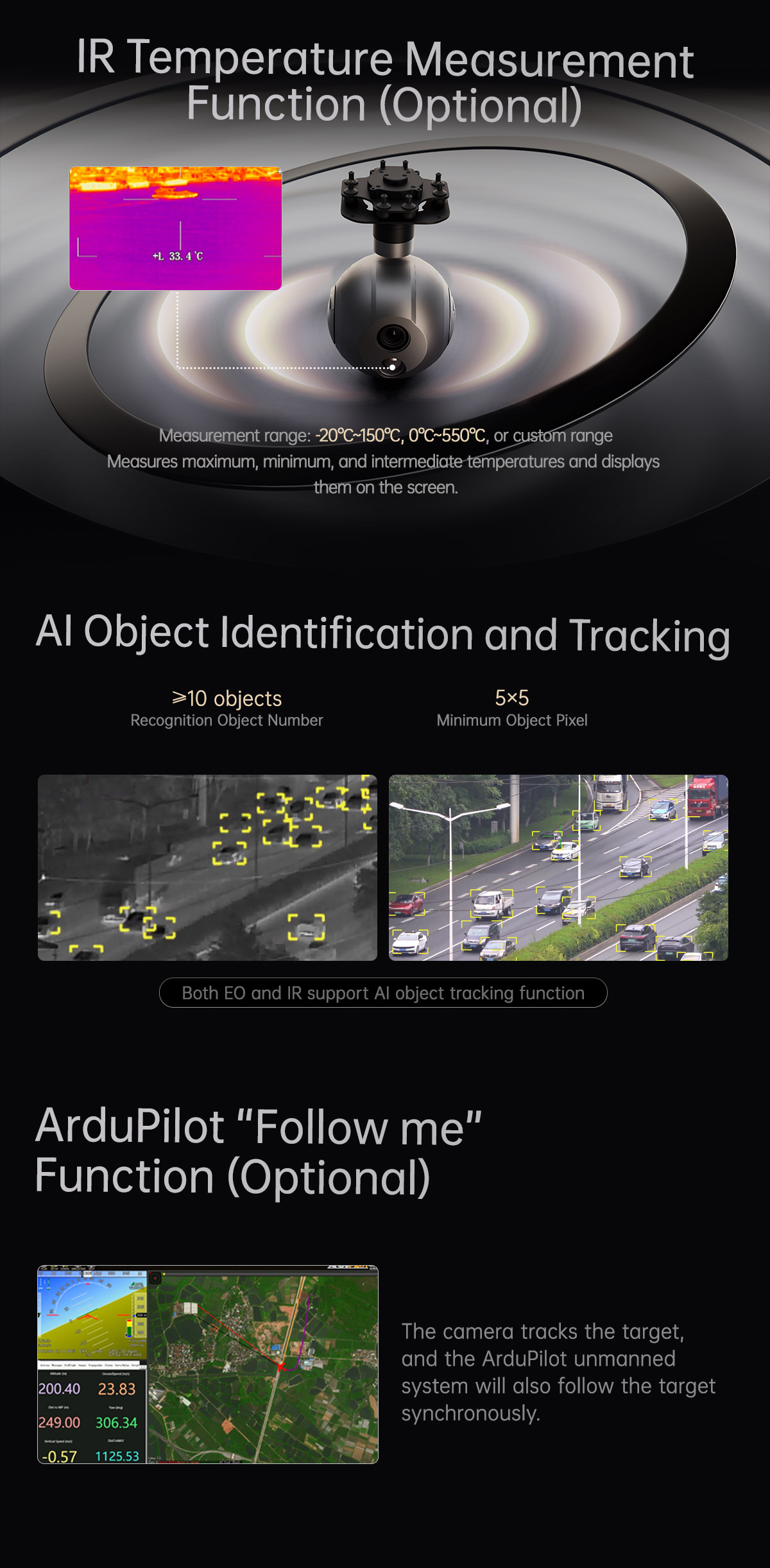 A20KT-19 4K Dual-sensor AI Object Tracking Gimbal Camera Specification