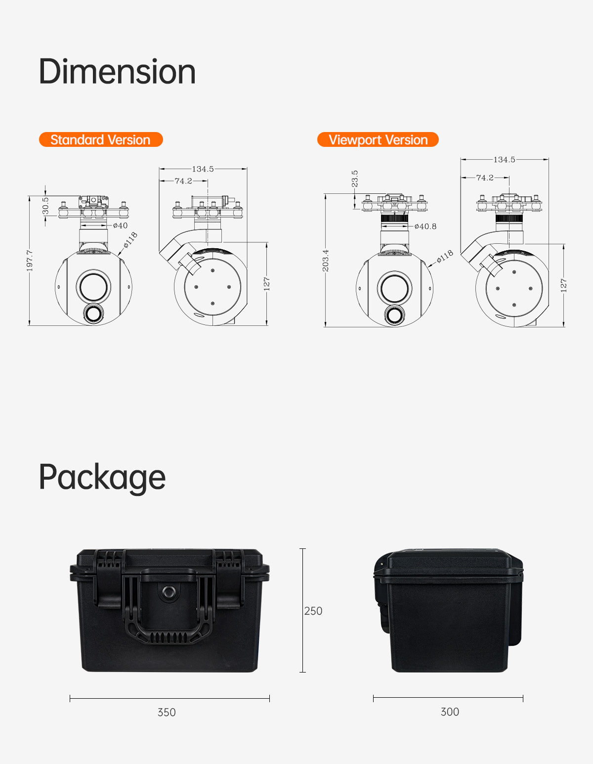 | Product meas. | 118*137.3*207.8mm(Standard Version)118*137.3*213.5(Viewport Version) |