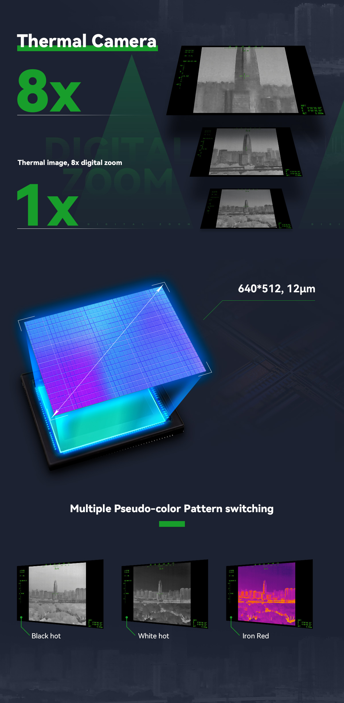 | Color palette | White, iron red, pseudo color |
