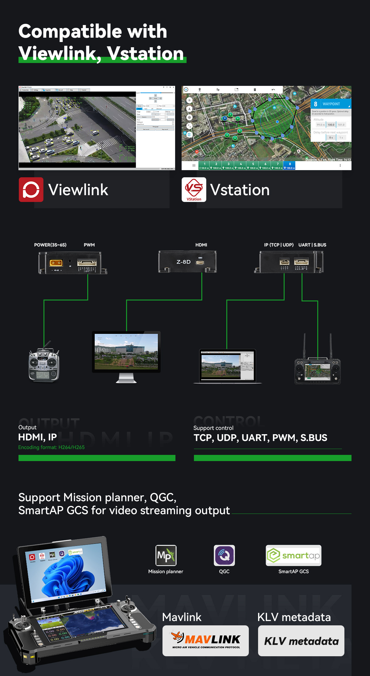 PWM / TTL / S.BUS/ TCP(IP output version) /UDP(IP output version) |