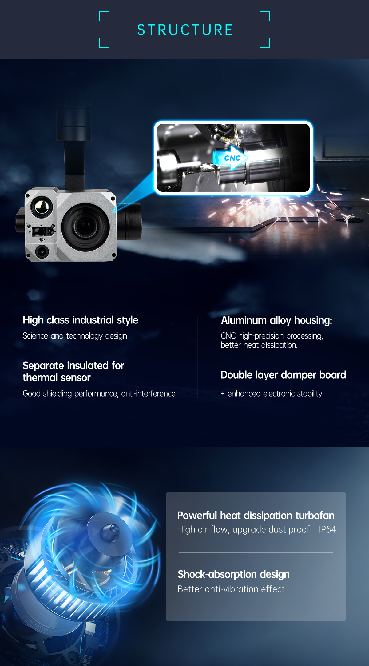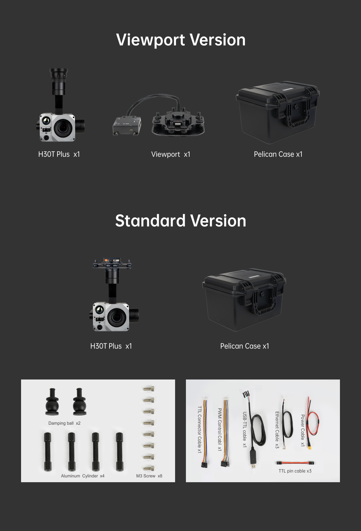 | Accessories | 1pc gimbal camera device, screws, copper cylinders, damping balls, damping boards, 1pc USB to TTL cable / Hight quality plastic box with foam cushion |