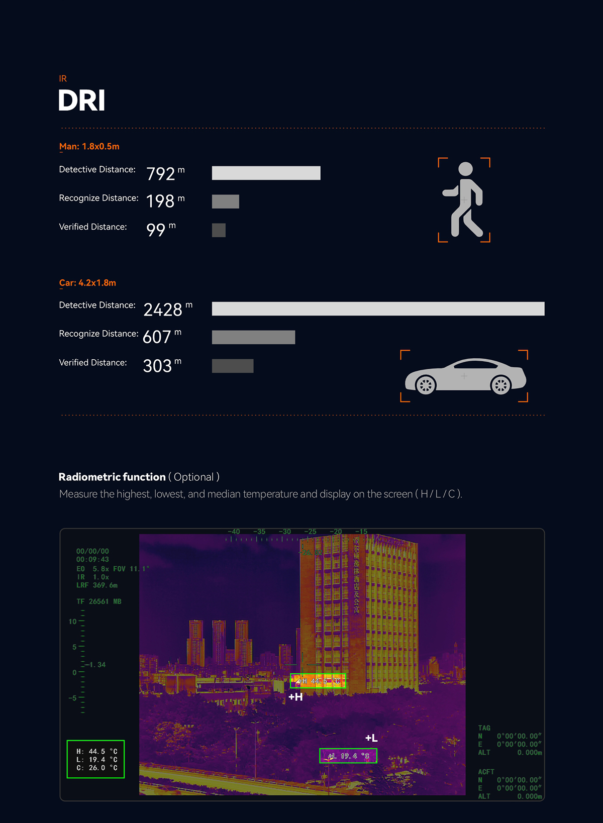 | Recognize Distance (Man: 1.8x0.5m) | 198 meters |