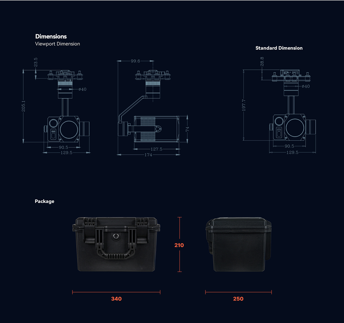 | Accessories | 1pc gimbal camera device, screws, copper cylinders, damping balls, damping boards, 1pc USB to TTL cable / Hight quality plastic box with foam cushion |