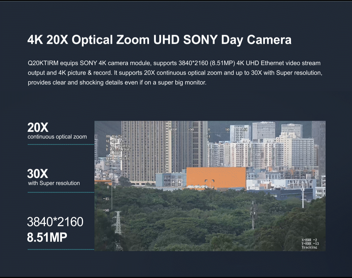 For more details, please visit Q20KTIRM 4K 20X Optical Zoom EO/lR 3km Laser Rangefinder Triple Sensors Object Tracking Gimbal Camera