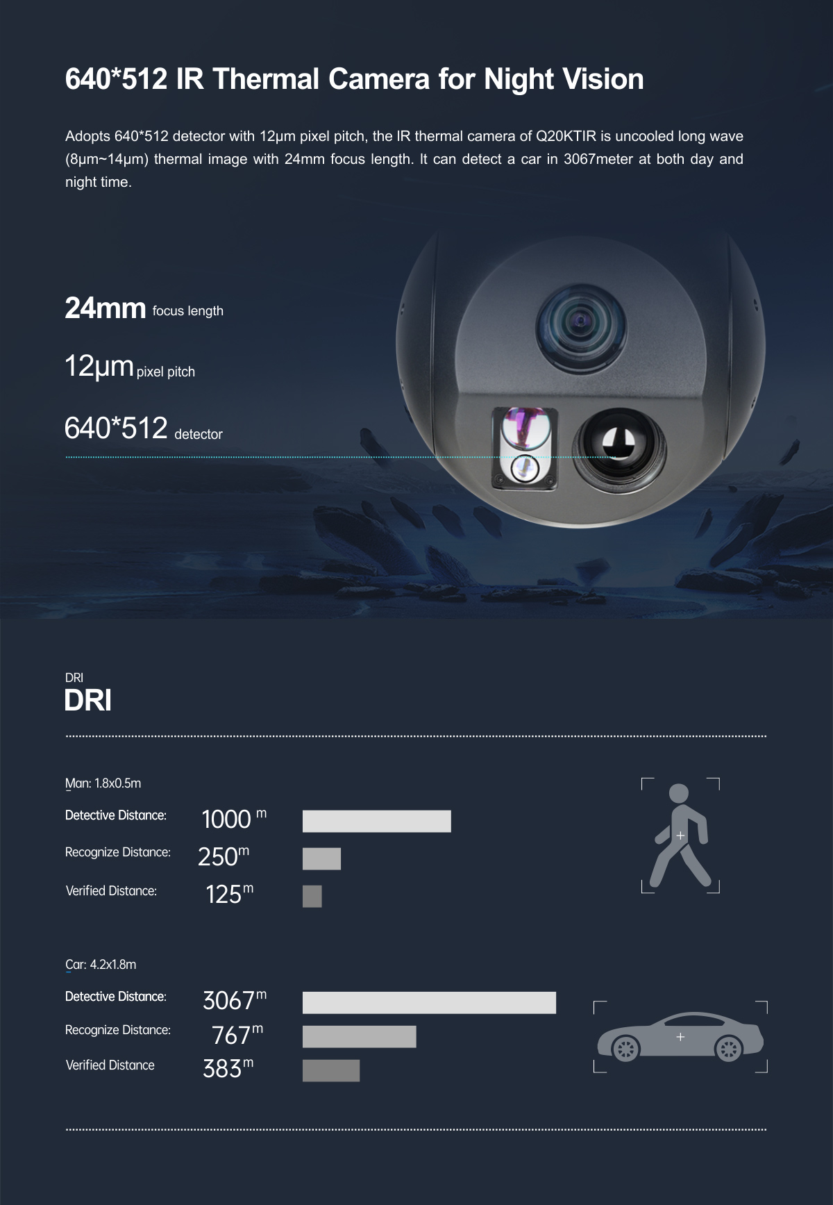 | Range | for car ≥ 3000m; for human ≥ 2000m |