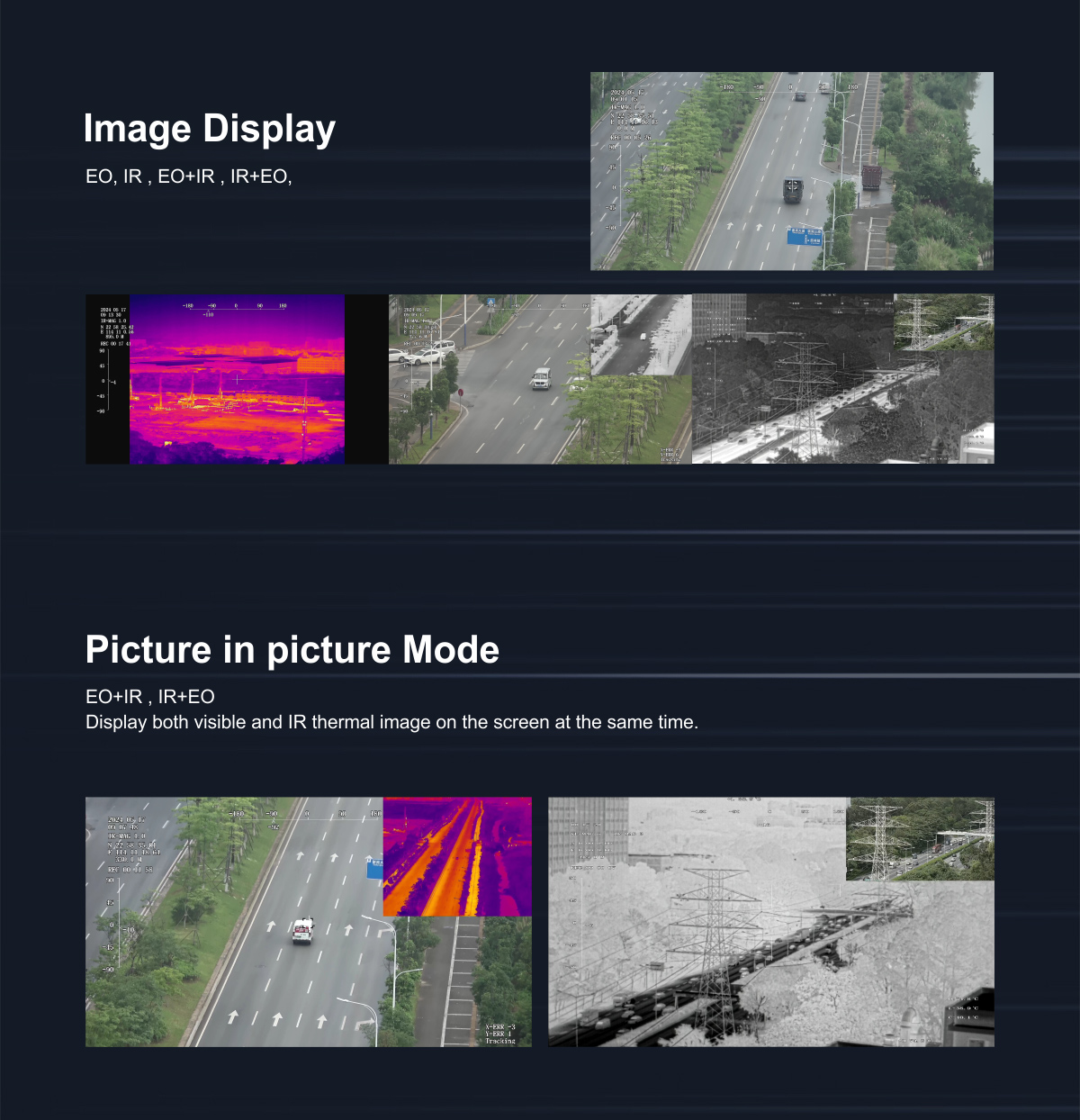| Video switching | EO+IR /IR+EO /EO /IR |