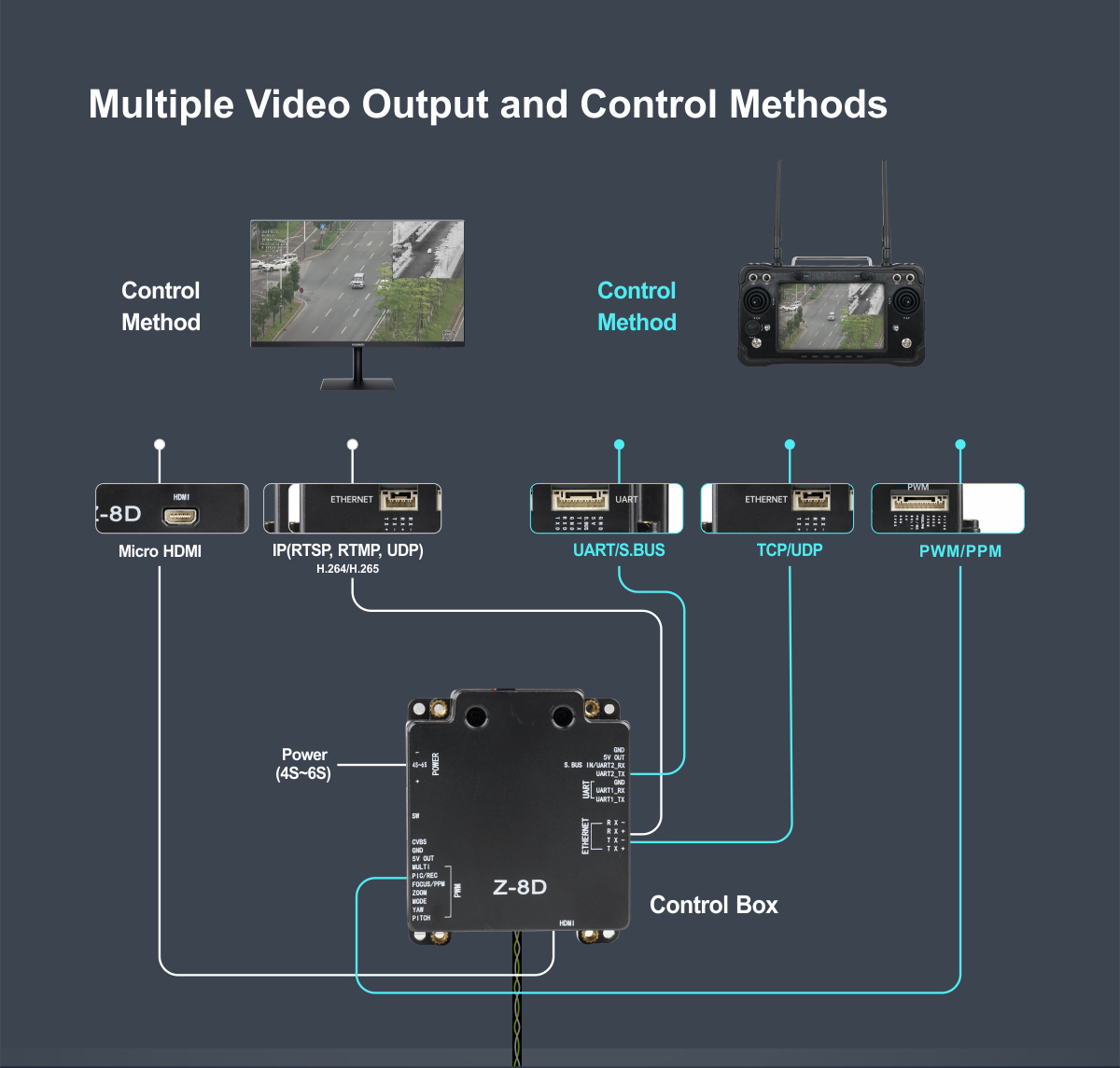 | Control method | PWM / SBUS / TTL / TCP / UDP |