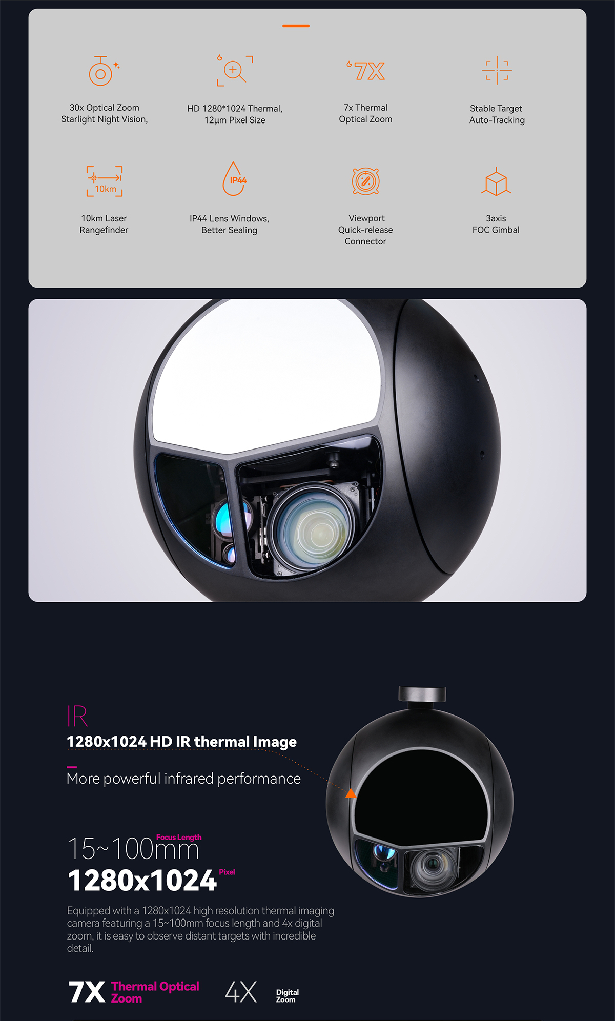 For more details, please visit Q30TIRM-15100 Superior Triple Sensors 7X Optical Zoom 1280 IR Thermal STARVIS EO with 10km LRF Gimbal Camera