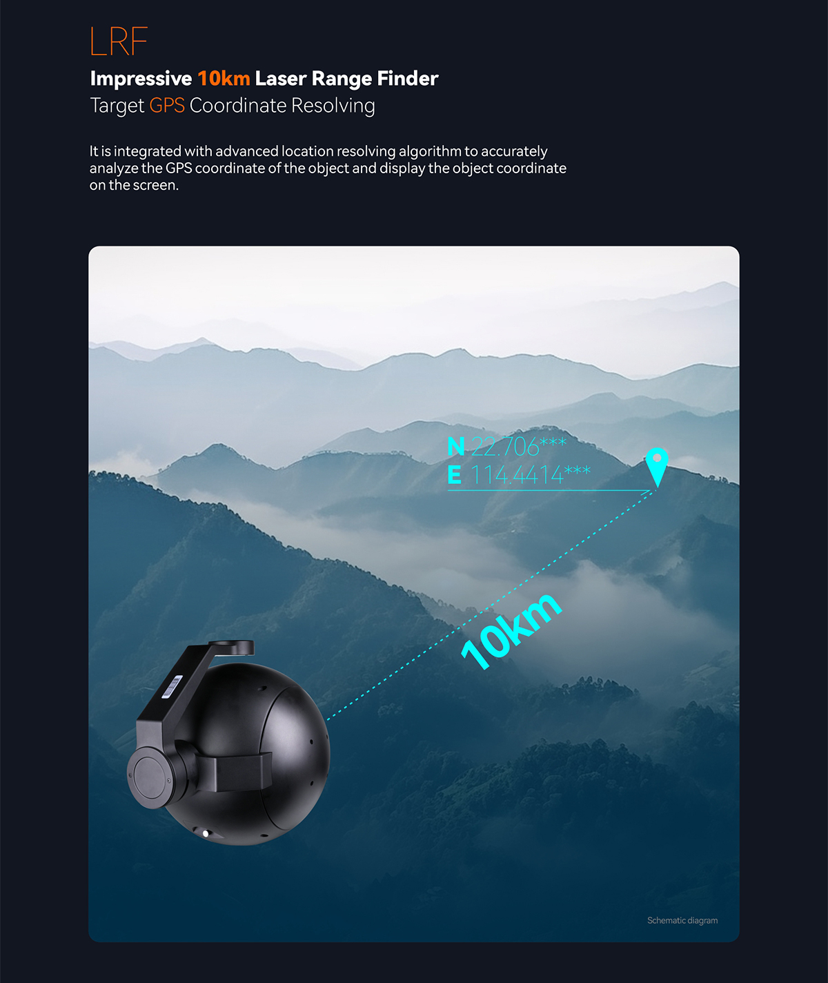 | Range | 10km for big target (eg. building) ≥6km for car (2.3m×2.3m) ≥2.5km for people (1.75m×0.75m) (Based on typical value: LOS visibiligy: ≥10km Diffuse reflection rate: ≥0.3 Humility: ≤80%) |
