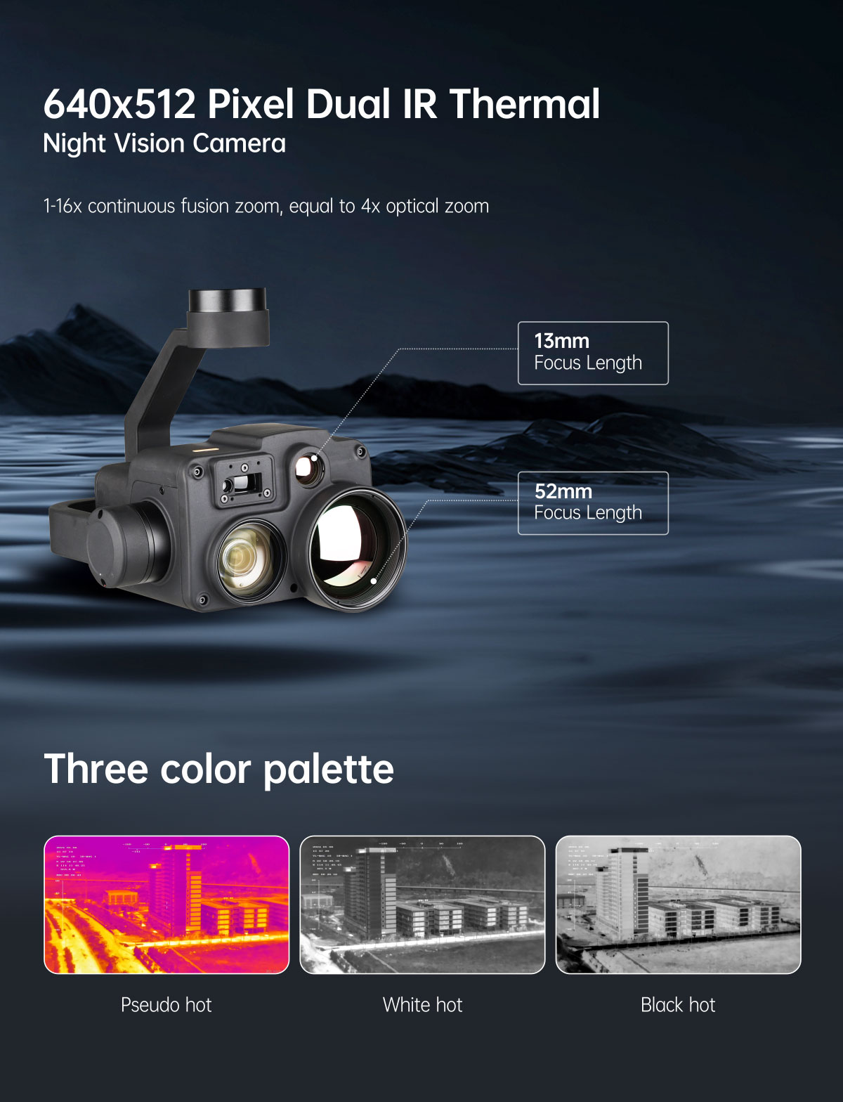 | Color palette | white hot, black hot, pseudo color |